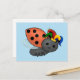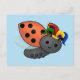 Cute coccinelle prête pour April Fools Day avec des ailes orange et un casquette coloré jester.