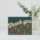 Fractionner le Carte de remerciements de design avec un imprimé en bloc audacieux de fleurs protéiques stylisées dans les tons bijoux sur un arrière - plan vert profond. Joli, minimaliste, design boho pour vous montrer merci. J'adore voir mes créations dans le monde - étiquetez-moi sur IG @parry_vegan.