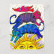 Deux petits chats de tabby à tubby sautent au-dessus du soleil dans une belle danse solstice avec un oiseau volant au-dessus du soleil.