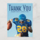 Un « Merci » écrit en typographie bleue haute au-dessus de votre photo de portrait de diplômé senior crée une simple carte postale de remerciement de fin d'études pour un joueur de football dans une équipe sportive. Personnalisez avec votre nom et votre promotion 2023 sur ces cartes postales de fin d'études minimalistes avec superposition de texte. Écrivez un message personnalisé de remerciement au verso.