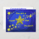 Ce design de carte postale Superstar présente des étoiles dorées sur le sol bleu avec des effets de parties scintillant et de scintillement.