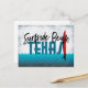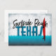 Surfside Beach Texas surf design. Une planche de surf rouge avec texte bleu et turquoise - thème de surfer typographique.