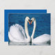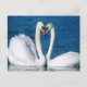 Carte postale avec image de deux cygnes dans un décor extérieur.
