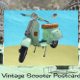 Le scooter vintage est vert menthe avec un siège en cuir. Il est garé contre un arrière - plan coloré, vert d'avocat et bleu ciel vif.