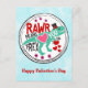 Carte postale Heureuse Sainte-Valentin avec l'image d'un t-rex vert portant un chapeau noir avec des coeurs et des fleurs tout autour. Le texte dit Rawr signifie que je t'aime en t-rex.
