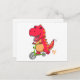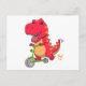 Carte Postale T-rex Dinosaur Monter Un Scooter Vert