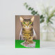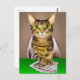 Carte postale dans un portrait d'un chat tabby brun et bronzé jouant aux cartes - et gagnant
