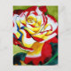 avec un design original de la peinture aquarelle de Sacha Grossel de rose de thé hybride rouge et jaune contre arrière - plan vert. Ce design d'art lumineux et contemporain est d'un grand design macro-floral au foyer rapproché d'un motif botanique dans un style lumineux, vif et coloré pour les amateurs de fleurs et de roses partout.