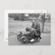 Vieille photo de vaudevillian, le chanteur Arthur Fields l'agitant sur une voiture à pédales antique, début des années 1900.