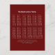 Carte Postale Texte blanc du tableau de multiplication sur foncé