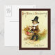 Image vintage de Thanksgiving d'un petit garçon pèlerin portant une corbeille remplie de fruits et légumes. En haut de la carte, on peut lire "Meilleurs voeux pour Thanksgiving" et en bas, on peut lire "For Auld Lang Syne", une chanson folklorique qui a été chantée la veille de la nouvelle année.