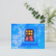 Un set de thé élégant dans la niche de fenêtre d'un bâtiment médiéval. Théière pointillée rouge et blanc, cruche de lait, tasse et soucoupe ainsi qu'un bol à sucre sont placés sur le rebord profond d'une vieille église qui sert aujourd'hui de magasin d'église. Mur bleu foncé et lumière orange chaude dans la fenêtre. Juste une belle composition dans la rue. Photographie stylisée et texturée pour réchauffer votre coeur dans la soirée d'hiver. Vous êtes invités à boire du thé chaud.