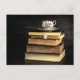 Teacup floral sur une pile de vieux livres durs. Idéal pour les amateurs de thé et de livres.
