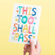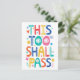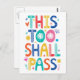 e someone to hang in therwith this decorful typographiy design featuring the message, "This Too Shall Pass." Type is accented with bright and cheerful floral, star, and butterfly icons. Inside can be customized to fit your needs.