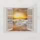 Une belle vague s'écrase sur le rivage au coucher du soleil, comme en témoigne une fenêtre ouverte.