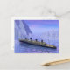 Navire Titanic à côté de grands icebergs coulant dans l'eau froide de l'océan du nord