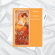 Carte postale avec illustration de l'Art Nouveau d'Alphonse Mucha (1860-1939), intitulée Topaz. Portrait d'une femme à la mode vêtue d'une robe orange. Partie de la série Precious Stones de 1900.