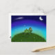 Etoile observant la tortue regardant les étoiles filantes avec la lune brillante. Un coccinelle et des lucioles l'entourent au sommet de la colline herbeuse.