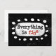 Un design typographique mignon qui dit "Tout va bien". C'est du texte noir et rouge sur un rectangle blanc avec des points blancs funky et ludiques qui l'entourent, le tout sur un fond noir.