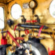 Vue du conducteur du train à vapeur sur les commandes de la chaussée du train à vapeur.