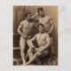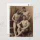 Cette carte postale présente une photo vintage de trois acrobates masculins de cirque trapéze musclés du début des années 1900.