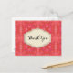 Une carte postale de remerciement au design tribal de style sud-ouest. Motif de formes géométriques composées de diamants et de triangles. Les tons rouge et rose créent un design gai.