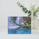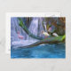 Cette image d'une cascade tropicale contient trois oiseaux : un flamant rose et deux ibis blancs. Il fait une belle carte postale.