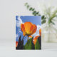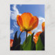 Bug's-eye vue d'une tulipe de printemps orange vif contre un ciel bleu.