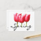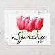 Célébrez le printemps avec cette carte postale représentant un trio de tulipes de couleur rose avec un design de texte "Printemps".