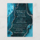 Cet élégant et glamour enregistrer l'invitation de date dispose d'un turquoise arrière - plan en marbre d'agate bleu avec des accents de parties scintillant faux argent. Le texte combine écriture manuscrite et polices sans serif modernes pour un look élégant et sophistiqué. Il conviendra parfaitement aux mariages d'automne et d'hiver.