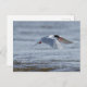 La sterne commune volant avec un minuscule poisson d'éperlure dans son sommet qui a été fraîchement capturé à la fin d'avril dans la carte postale de l'Ouest de la Finlande.