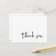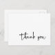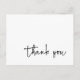 Carte postale de remerciement simple conçue avec une calligraphie de script moderne. Les couleurs de police et d'arrière - plan peuvent être modifiées. Le dos est vide pour écrire à la main un message personnel une fois vos cartes postales arrivées. Une façon élégante d'envoyer une simple note de remerciement pour tout événement ou célébration.