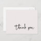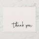 Carte postale de remerciement simple conçue avec une calligraphie de script moderne. Les couleurs de police et d'arrière - plan peuvent être modifiées. Le dos est vide pour écrire à la main un message personnel une fois vos cartes postales arrivées. Une façon élégante d'envoyer une simple note de remerciement pour tout événement ou célébration.