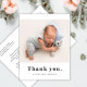 Simple Moderne Minimaliste Gras Typographie Nouveau-né Baby Photo Merci Carte Postale. Dispose d'un joli texte "merci" dans une énorme police de caractères serif en noir et blanc. À l'envers, message personnel pré-fait. Idéal pour bébé garçon ou fille. Facile à personnaliser avec votre photo bébé et les détails.