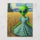 Carte Postale Un Alien vert dans un champ de blé