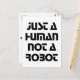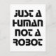 Carte postale de typographie noir et blanc, qui dit "Juste un humain pas un robot" écrite avec une police audacieuse, moderne et graphique. Vous pouvez modifier ou supprimer le verso de cette carte postale comme vous le souhaitez.