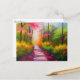 Restez en contact avec cette jolie image d'un sentier traversant une forêt de feuilles verts, jaunes et roses.
