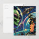 Carte Postale Une astronaute rencontre un Alien extra-terrestre
