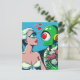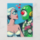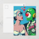 Carte Postale Une femme Alien et un robot vert dans l'amour