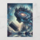 Une mignonne reine de conte de fées lisant un livre style double exposition art imaginaire dans les tons bleus la plupart du temps