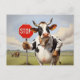 Carte Postale Une vache tenant un panneau stop