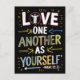 Avec des mots qui s'aiment les uns les autres comme vous-même dans des lettres audacieuses et colorées, mettant l'accent sur l'importance de répandre l'amour et la compassion.