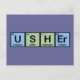 Ce design amusant épelle le mot USHER avec des éléments du tableau périodique! C'est cool ? Un design coloré pour quiconque travaille comme huissier, surtout s'ils ont aussi un intérêt pour la chimie ou la science ! Vous pouvez customiser ce cadeau ! Déplacez le mot autour, changez la couleur ou le style de l'arrière - plan, ajoutez du texte ou des images — faites-le vous-même !