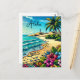Aloha de notre carte postale de vacances. Jolie côte tropicale. Jolie eau bleue, palmiers, fleurs tropicales et phare en arrière - plan. Ai art fait dans un style pop art de la bande dessinée.