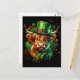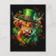 Vache Highland mignonne habillée pour la St. Patrick's Day dans un casquette et écharpe avec shamrocks.
