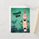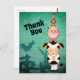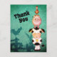 Cette jolie carte postale en Merci de ferme présente une vache avec un cochon debout sur sa tête un coq debout sur la tête du cochon. L'arrière - plan est une scène de ferme de style déprimé avec des animaux de ferme silhouettes; un coq, cochon, canard et chat dans les tons verts. Quelques graphiques de Trina Walker sur DigiScrapKits.com.