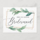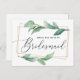 "Serez-vous ma demoiselle d'honneur" carte avec aquarelle verte tropicale et élégant script pour le thème de mariage du jardin botanique d'été.