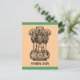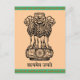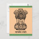 L'ancien mantra du Mundaka Upanishad "la vérité seule triomphe" écrit en sanscrit. L'emblème de l'Inde composé de 3 lions sur un piédestal avec le mantra écrit en dessous