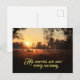 Beau lever de soleil brumeux avec un texte "Sa miséricorde est nouvelle chaque matin".