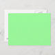 Une carte postale "Mint Green" de couleur claire et solide (avec une couleur seulement à l'avant). Mint Green est un vert pâle, un vert clair. Cliquez sur "Personnaliser" pour changer de couleur ou pour ajouter du texte ou une conception. Code hexadécimal du produit : #98ff98